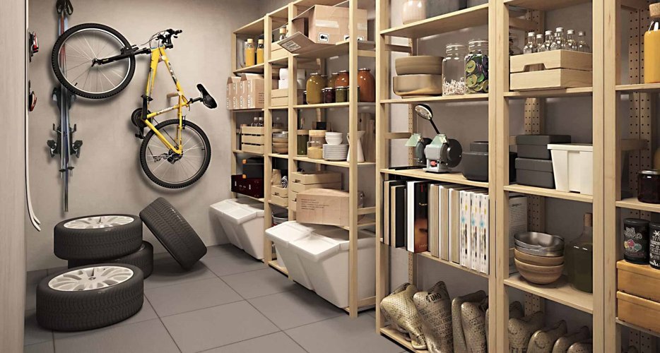 Для детских колясок и велосипедов оборудованы колясочные в каждом подъезде. Кладовые помещения для хранения крупногабаритных вещей на подземном уровне освободят пространство