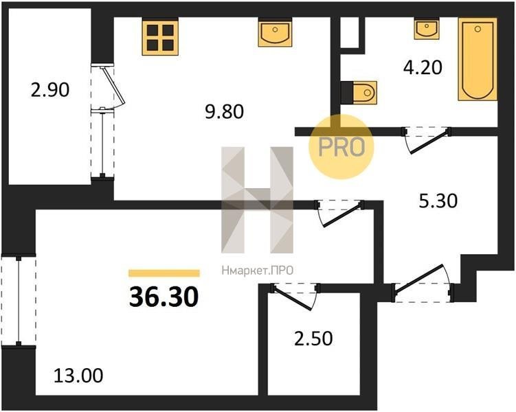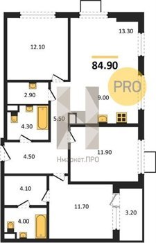 Площадь от 30.3 м2
