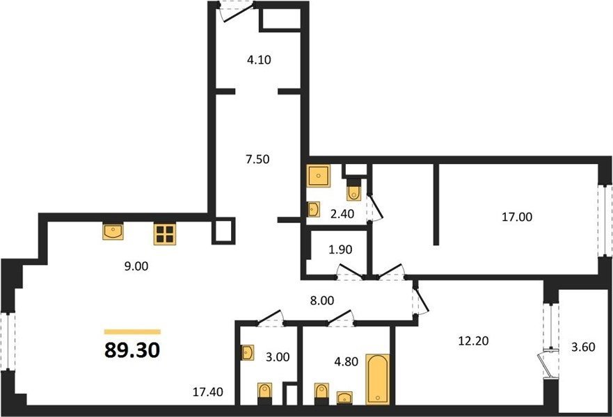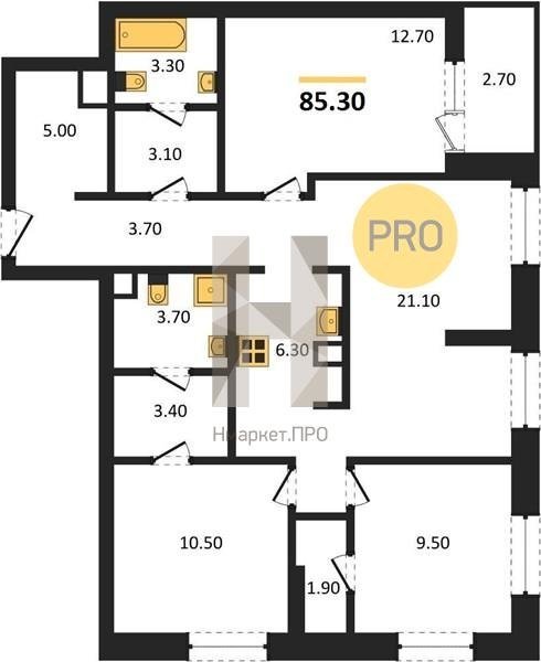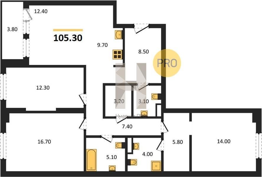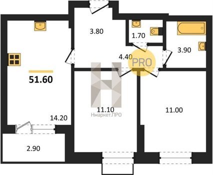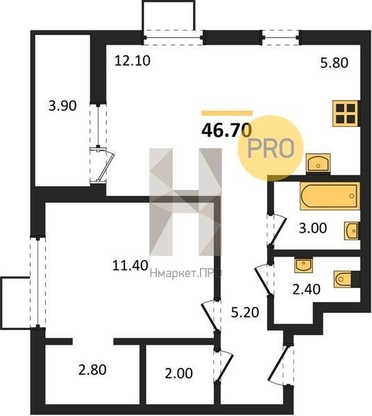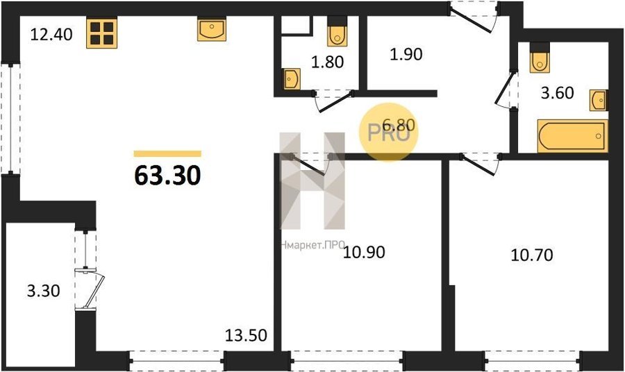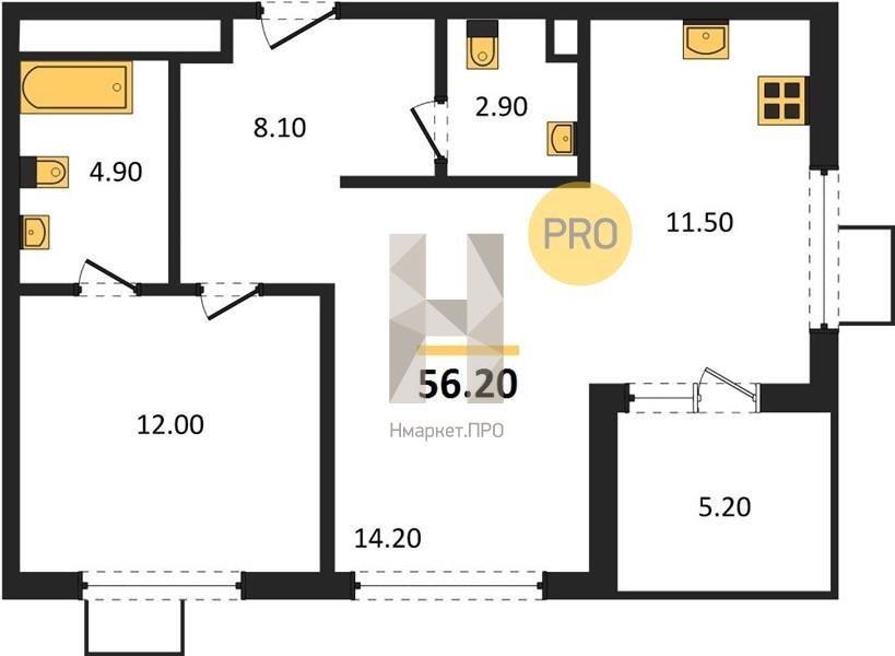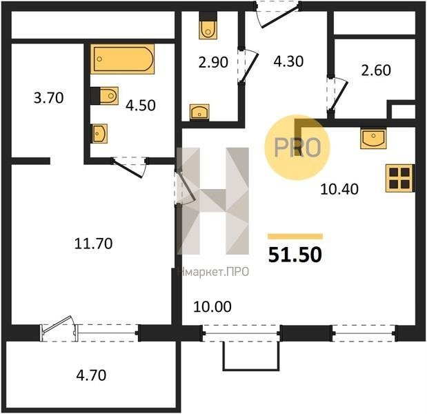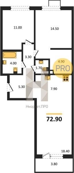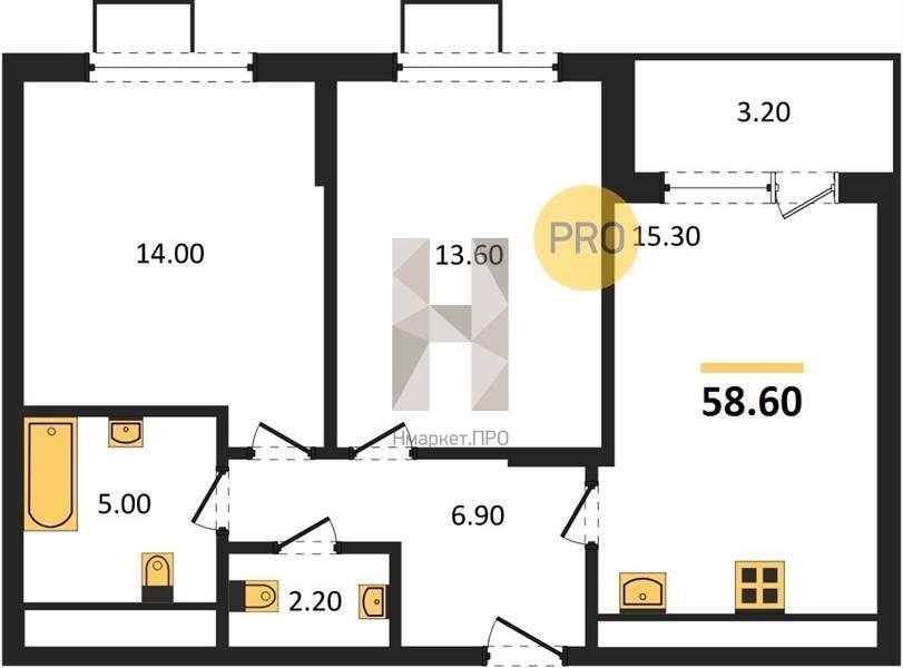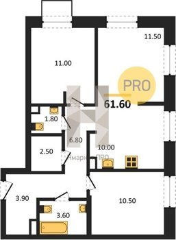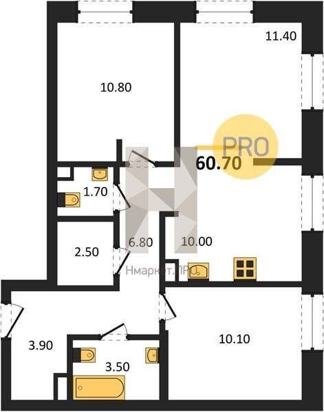 Площадь от 60.7 м2