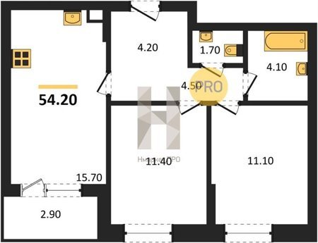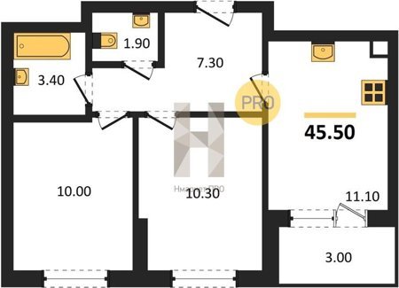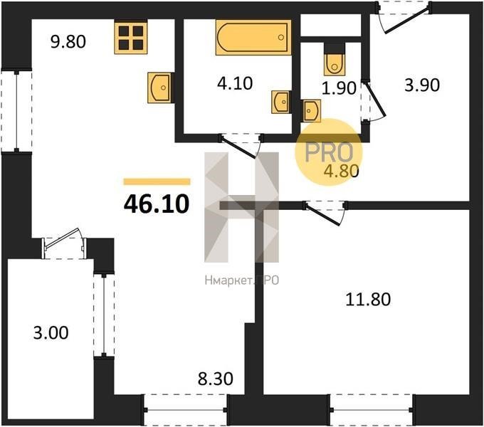Площадь от 45.5 м2