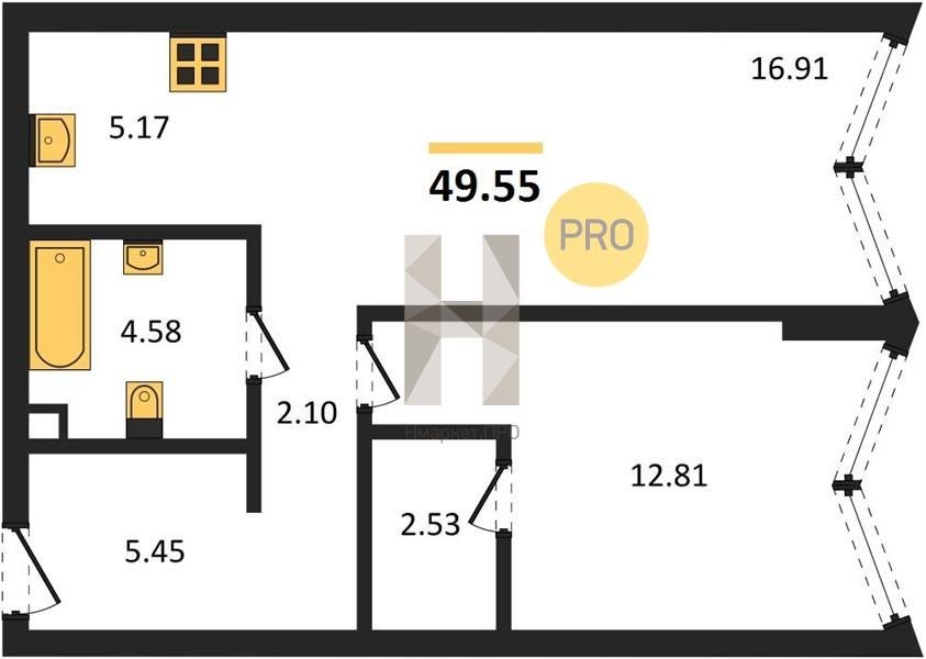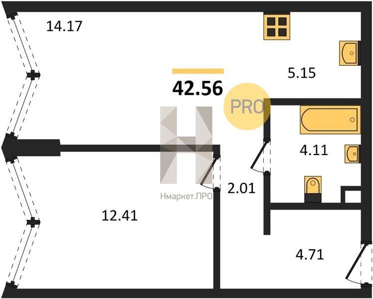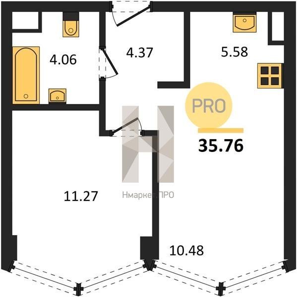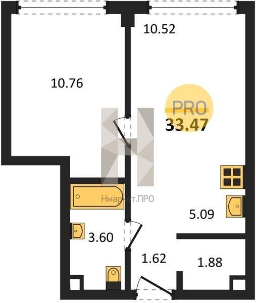 Площадь от 33.47 м2