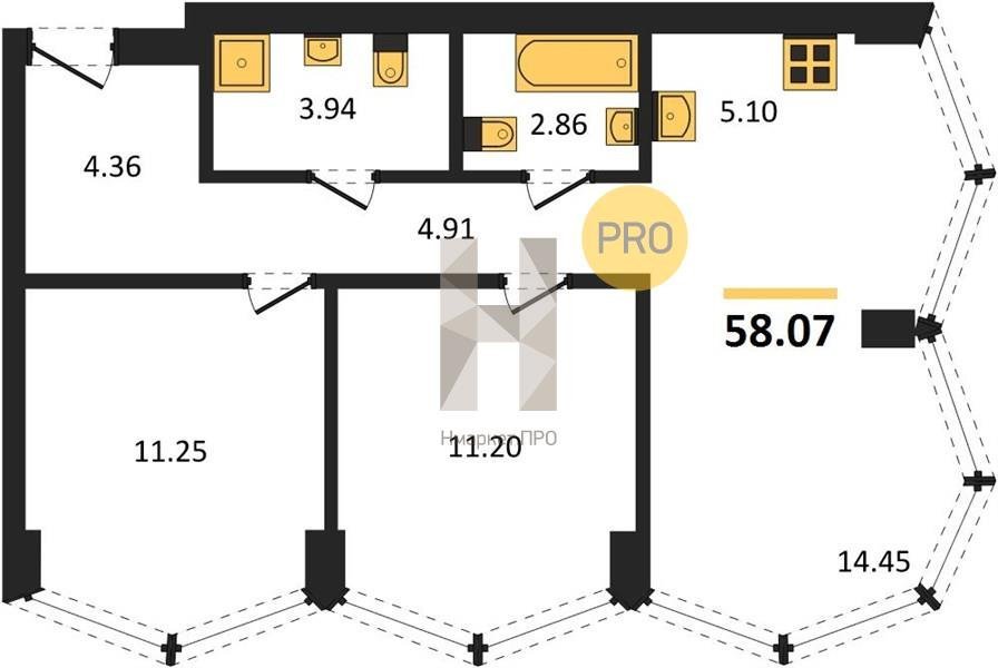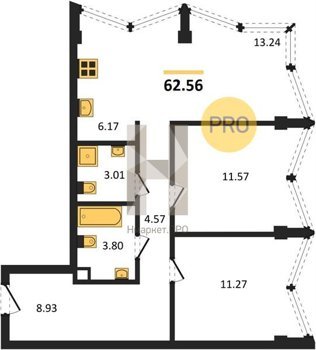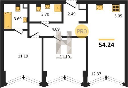 Площадь от 54.24 м2