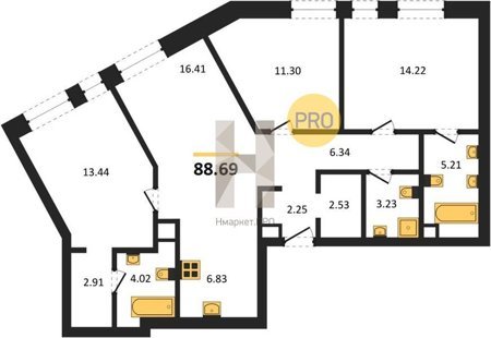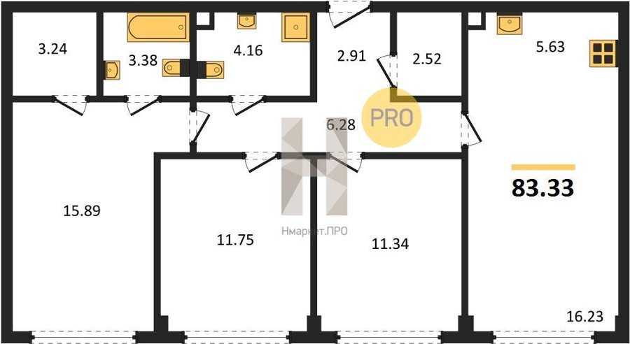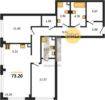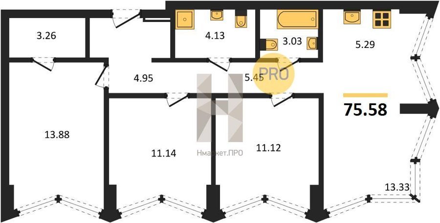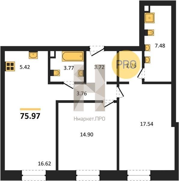 Площадь от 75.58 м2