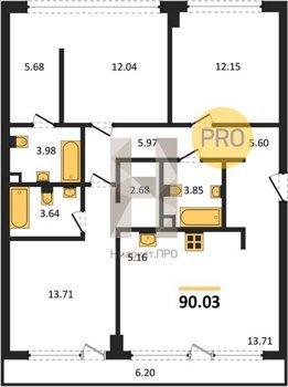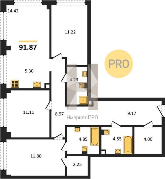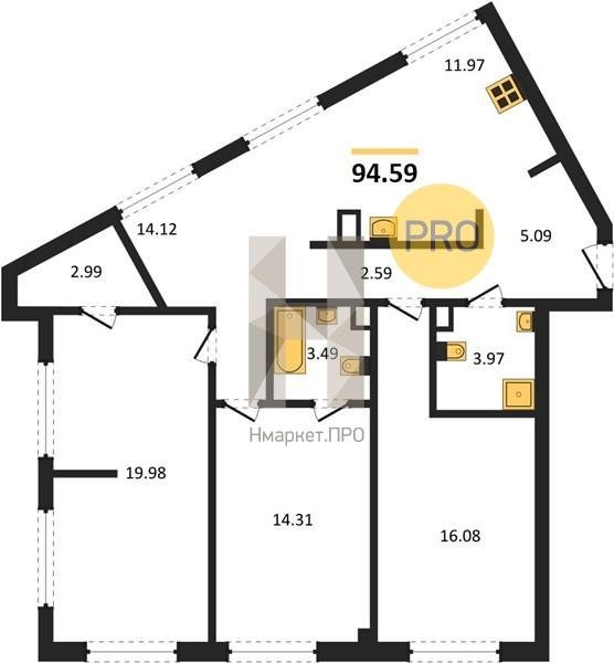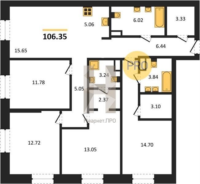 Площадь от 105.46 м2